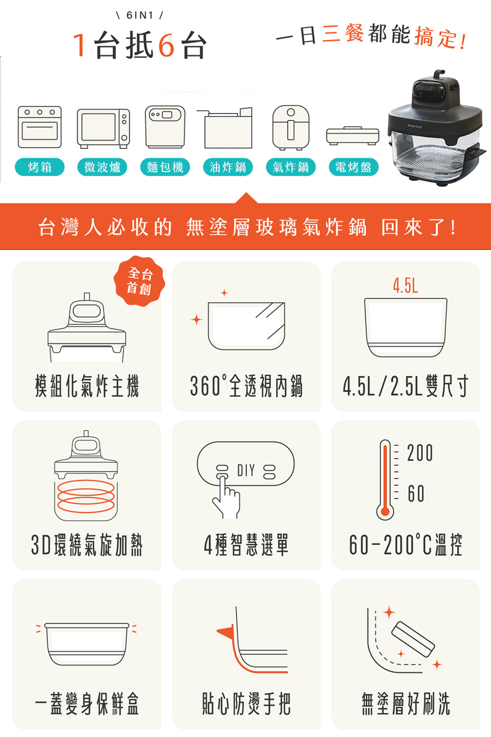 玻霸鍋Plus|多功能玻璃氣炸鍋